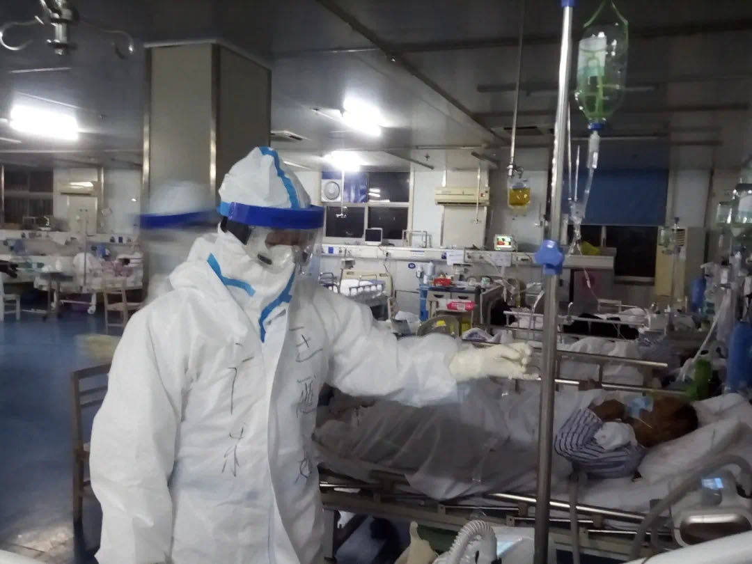 剛開始,我小心地保持著與患者的距離,一個、兩個、三個……隨著接觸的患者增加,我慢慢也放松了,開始進入狀態(tài)。在病房內,我詢問病人情況,解釋病情,提醒住院醫(yī)師做好查房記錄,探討用藥情況,傳達鐘南山院士的最新診療方案、第六版治療指南……終于找到支援隊專家的感覺了。憋氣、悶熱,似乎都來不及體會,突然后背一涼,怎么有水滴下來了?難道是防護衣破了?心頭一緊,再仔細感覺,原來是汗水在里面流淌,虛驚一場。