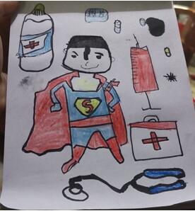 見(jiàn)圳客戶端·深圳新聞網(wǎng)訊(記者 曹文麗 通訊員 王霏 楊睿)有這么一幅畫(huà),中間畫(huà)著一位“小超人”,“小超人”周?chē)?huà)著聽(tīng)診器、注射器等醫(yī)療器械,充滿童趣,在抗疫期間,這幅畫(huà)也給人們正能量。而這幅畫(huà)的作者,是一個(gè)6歲的孩童。他畫(huà)完后認(rèn)真地說(shuō):“這個(gè)病毒太壞了,我長(zhǎng)大后要當(dāng)醫(yī)生,當(dāng)超人,要用聽(tīng)診器、注射器,把這些病毒全殺死!”稚嫩的聲音里充滿了對(duì)醫(yī)生這個(gè)職業(yè)的向往,因?yàn)樗δ咳靖改腹ぷ鲿r(shí)的忘我,因?yàn)樗母改甘且粚?duì)戰(zhàn)斗在抗疫一線的醫(yī)務(wù)工作者。