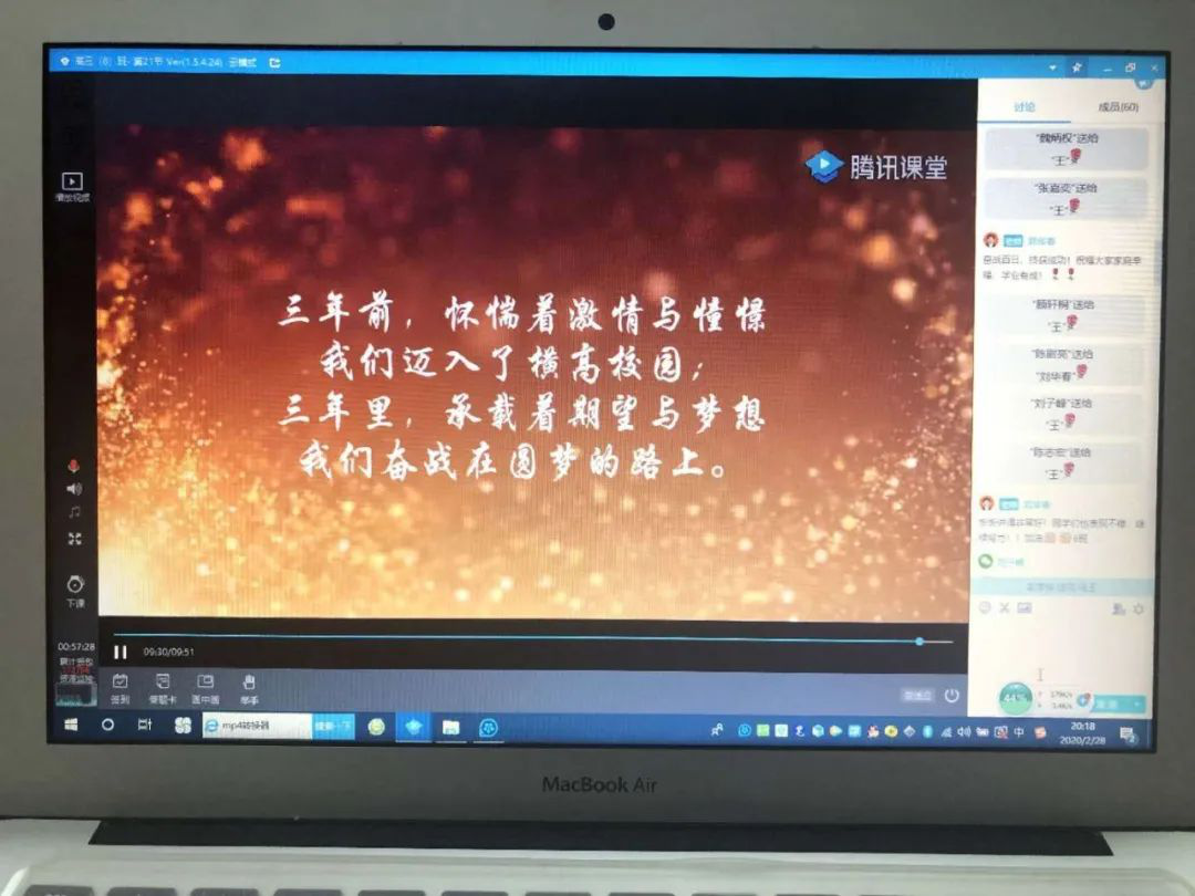 2月28日,橫崗高級(jí)中學(xué)2020屆高三全體師生利用騰訊課堂召開以班級(jí)為單位的網(wǎng)上“高考百日誓師大會(huì)”。各班精心制作PPT,提前錄制老師、家長(zhǎng)、同學(xué)的祝福小視頻,科任老師、學(xué)生家長(zhǎng)、學(xué)生代表連麥鼓勵(lì),同學(xué)們最后對(duì)著電子屏幕高喊百日誓詞同時(shí)下定決心,為自己的夢(mèng)想,刻苦拼搏,永不言悔。網(wǎng)上“百日誓師”豪情滿懷、溫情涌動(dòng)、感人至深。