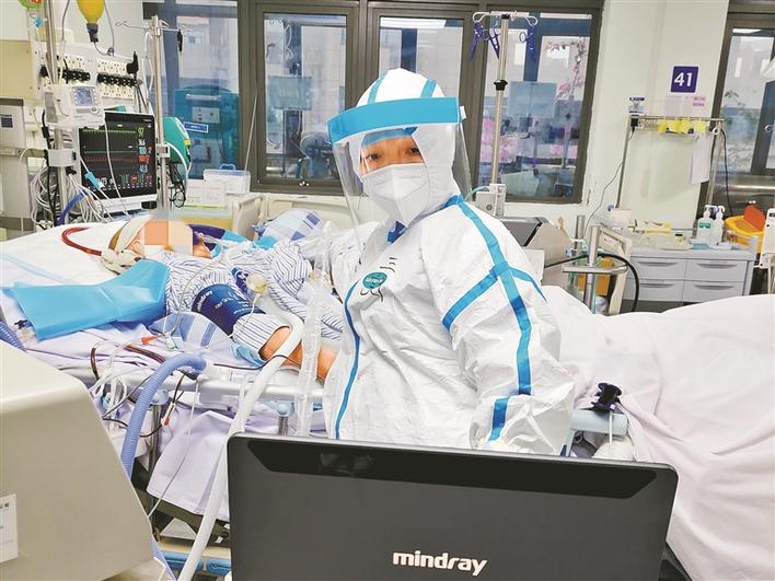 疫情早期,形勢嚴(yán)峻,隨著確診病人一批批收治,重癥病房很快進入超負(fù)荷狀態(tài)?!白罡叻宓臅r候,我們接診了40多名患者,整個ICU病房都住滿了。重癥、危重癥患者有個特點,就是病情變化特別快,一兩個小時病患的情況就差很遠,這就要求我們必須時刻嚴(yán)密監(jiān)測。因此,每次在班上,我都處于高度緊張的狀態(tài),不停地要去觀察分析各種數(shù)據(jù),要及時對患者治療進行調(diào)整,加上穿著厚厚的防護服,處于缺氧狀態(tài),有時候確實感覺到蠻累的?!倍@樣超速運轉(zhuǎn)的值班,一直持續(xù)了一個多月。