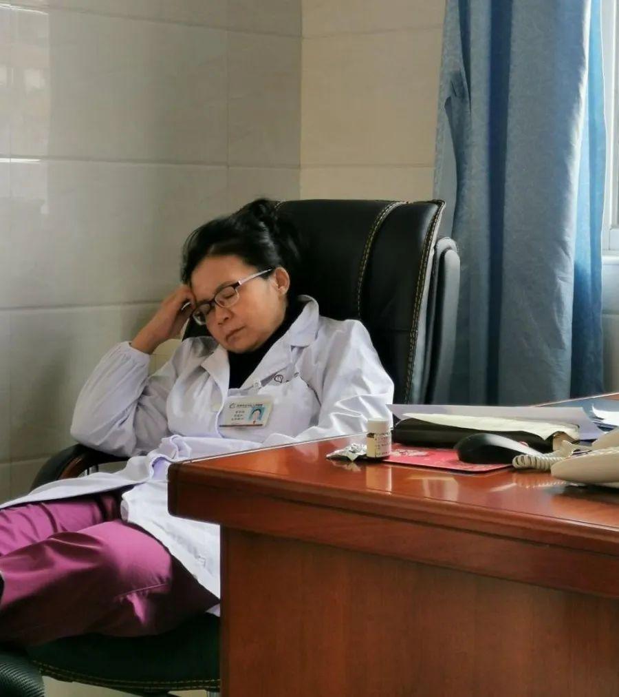 龍華區(qū)人民醫(yī)院感染性疾病科主任姜春梅負責發(fā)熱門診,是此次防控“戰(zhàn)役”龍醫(yī)的前線指揮官,今年49歲的她曾參加2003年非典、2009年甲流的防控工作。疫情期間,身體抱恙的她一直在打針吃藥,但仍在盡心安排防疫工作,工作間隙吃完藥的她,就這么靠在椅子上瞇一會。