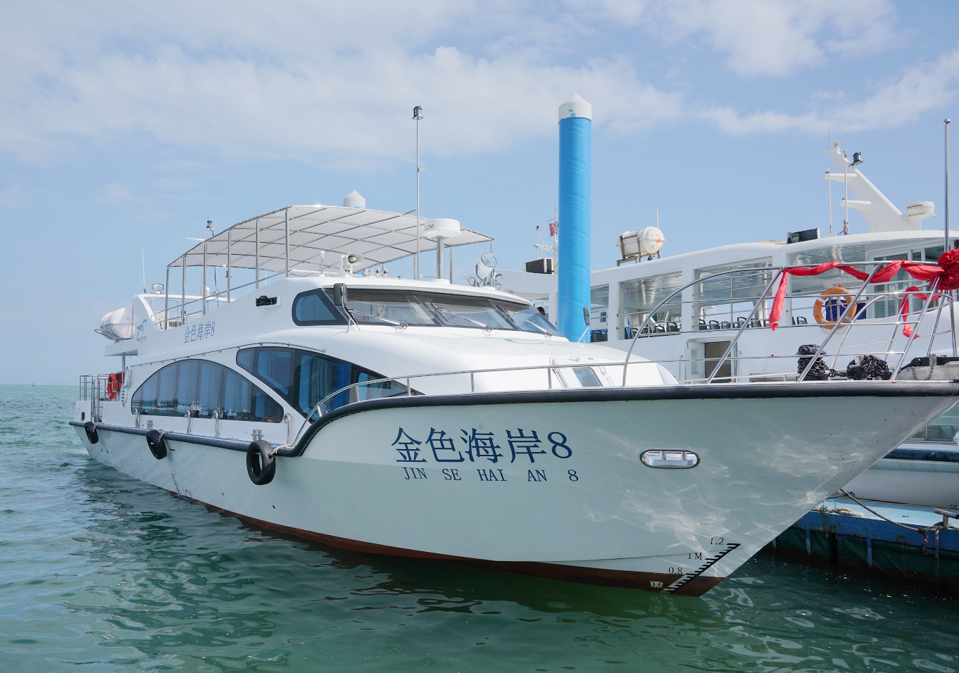 停靠在鹽田金色海岸碼頭處運(yùn)營(yíng)游船。韋建誠(chéng)攝