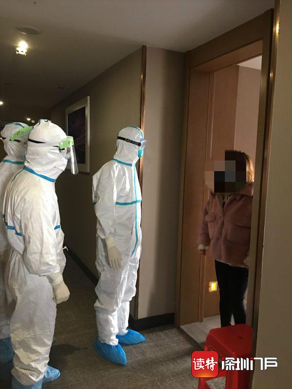 醫(yī)療隊員在留置觀察點對留觀人員進行回訪。 深圳醫(yī)療隊供圖