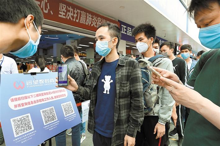 為方便市場了解人員去向,華強北街道指導市場管理方利用運營商推送服務,引導商戶通過掃描相應的運營商二維碼,獲取人員過去14天去向,做到入場人員信息“一掃清”。根據有關通知,商戶準備好自己的健康檔案、i深圳、“一掃清”等信息,經現(xiàn)場測溫正常,若是從外地返深人員,按要求進行居家隔離后,才能順利取得市場商戶通行證。通行證需要配合身份證使用,確保一人一證。另外,華強北街道還通過升級通風系統(tǒng)等方式加大了室內空氣流動量。(深圳商報記者 余海波 攝影報道)