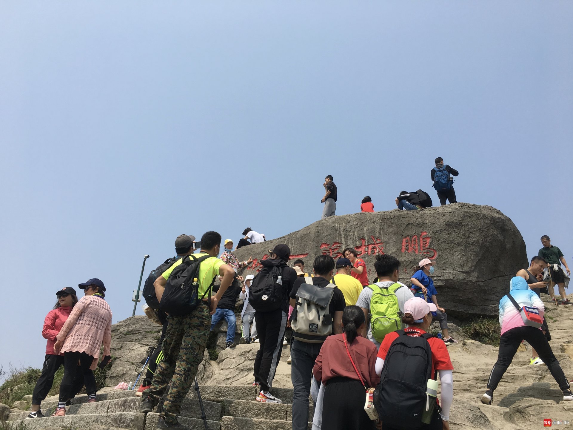 好漢坡是去往大梧桐的登山道之一,長度有100多米,非常陡峭,但游人卻比其他登山道多了許多。整個陡坡中部種滿一排杜鵑,吸引游人前往觀賞和拍照。在大梧桐,刻有“鵬城第一峰”的巨石是海拔最高處,是整個梧桐山游客最密集的地方。在巨石前,拍照需要排隊,還有游客對著群山吶喊。