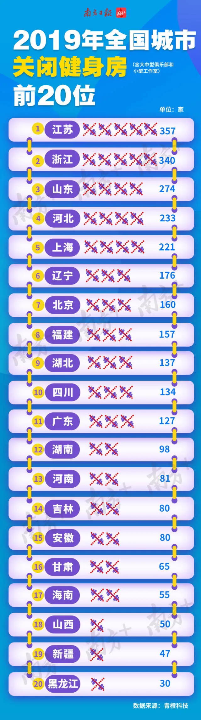 2019年同比增長(zhǎng)了3013間健身房。增長(zhǎng)數(shù)量位居全國(guó)第二,同期僅關(guān)閉127家健身房。