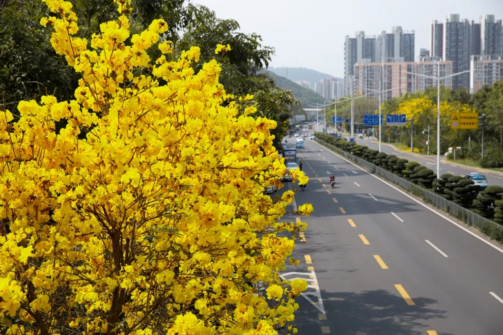 黃花風鈴木迎著和煦的春風驚艷綻放,