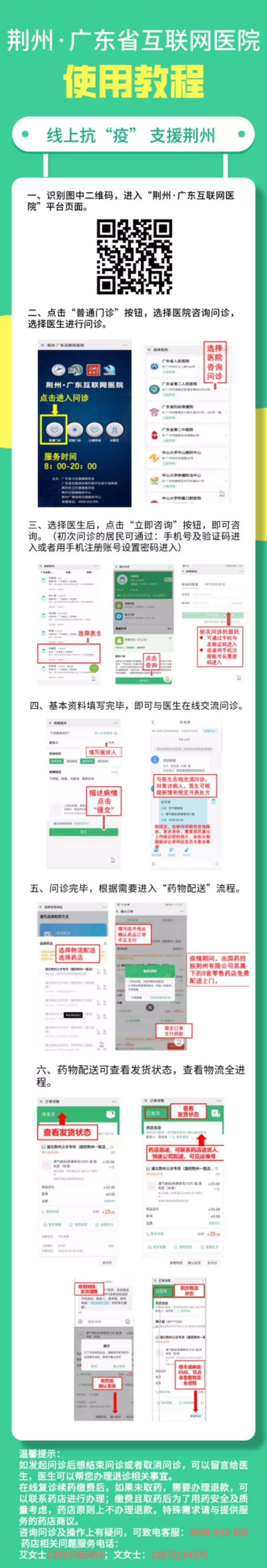 荊州廣東互聯(lián)網醫(yī)院自2月29日上線,依托廣東優(yōu)質線上服務資源,為荊州市民提供的常見病慢性病復診、就診指導、新冠肺炎咨詢、心理疏導、健康宣教、健康評估、送藥上門等免費服務在疫情期間為荊州市民就診和用藥提供方便。