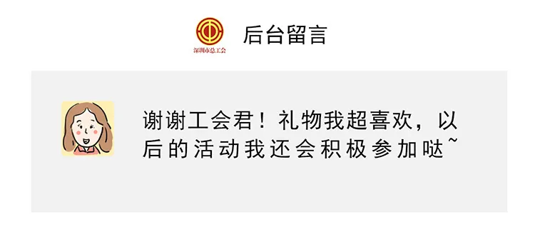 2.在留言區(qū)寫下你與“深圳工會(huì)”的回憶或是對(duì)“深圳工會(huì)”公眾號(hào)內(nèi)容的建議。