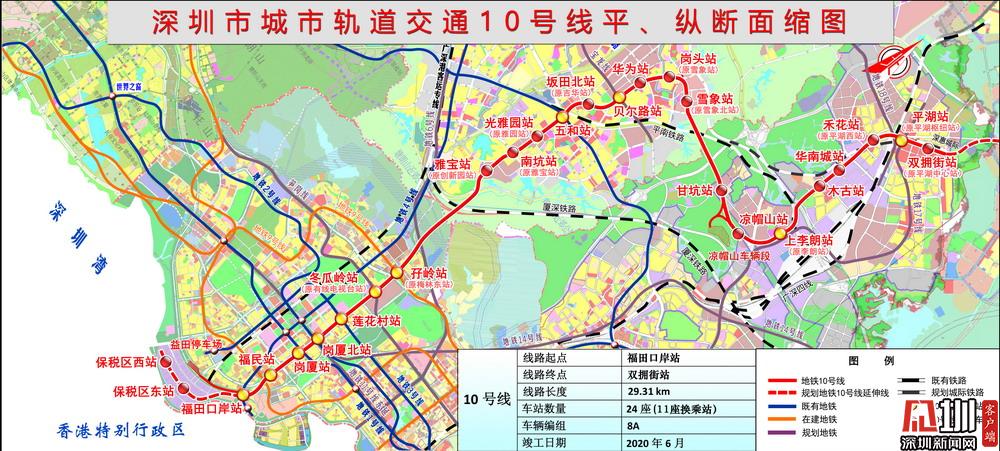 地鐵10號線起于福田口岸站,途經(jīng)福田區(qū)、龍崗區(qū),止于雙擁街站,線路全長29.31公里,共設(shè)24座車站,全部為地下車站。地鐵10號線兼具干線和局域線功能,是深圳市首條南北向采用8A編組的線路,并預(yù)留“南聯(lián)北拓”條件,成為又一條“南北動脈”,建成后,福田口岸到平湖僅用45分鐘即可到達(dá),將大大緩解福田中心區(qū)至坂田段的交通壓力。