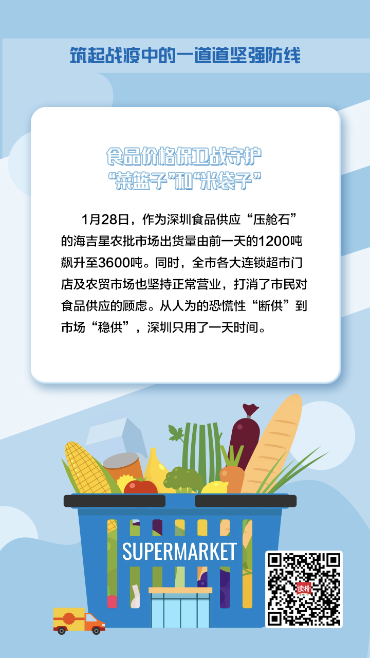 面對抗擊疫情早期出現(xiàn)的市場不穩(wěn)定情況,深圳市場監(jiān)管部門果斷出手,提出保價格、保質(zhì)量、保供應(yīng)的“三?!辈呗裕皇种问称忿r(nóng)產(chǎn)品供應(yīng)鏈,一手重振防疫物資供給鏈,以充足的物資補給,將食品和防疫物資的價格穩(wěn)定在正常水平上。