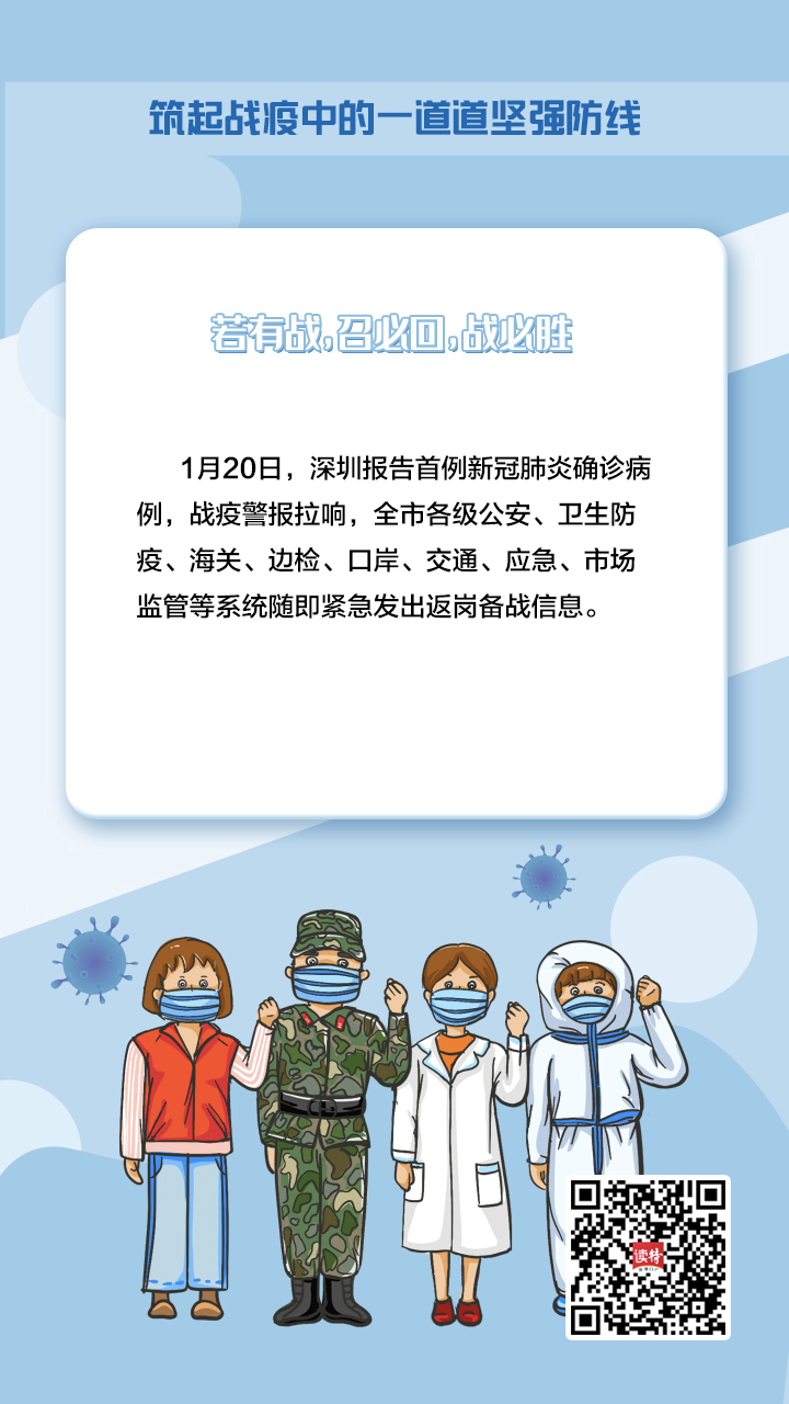 牢記習(xí)近平總書記的重要指示,深圳在新冠肺炎疫情防控的人民戰(zhàn)爭、總體戰(zhàn)阻擊戰(zhàn)中,鑄造了一支由不同“兵種”、精銳之師組成的守護者隊伍,堅定地筑起一道堅強屏障,守護好城市“外防輸入、內(nèi)防擴散”的門戶。