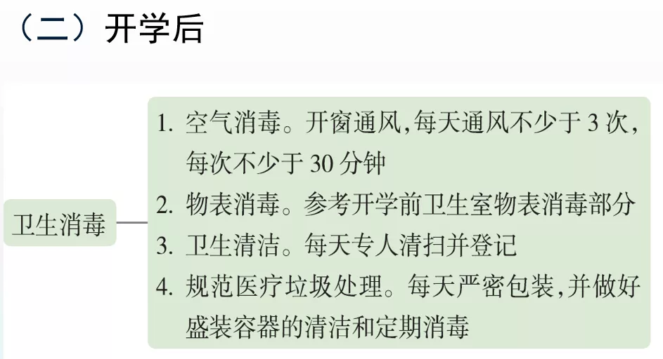 二是實施校園封閉式管理。做好校園衛(wèi)生整治、“四害”消殺和重點場所的預防性消毒。設(shè)置相對獨立的健康觀察區(qū)(室)、設(shè)置洗手設(shè)施、儲備足夠的防護用品等措施。