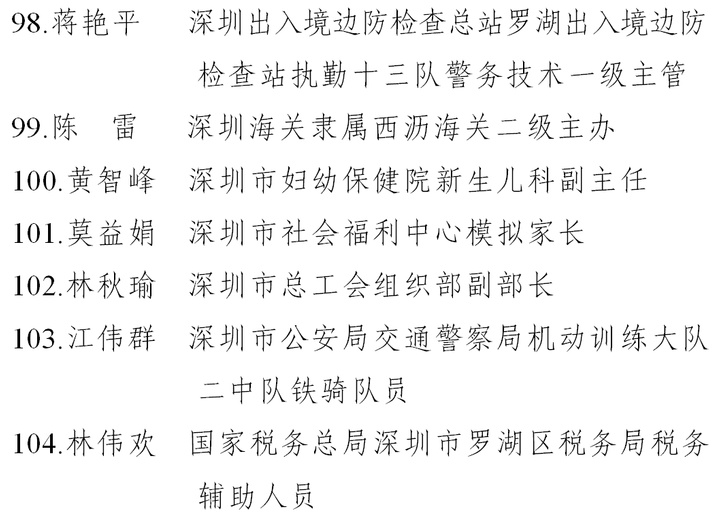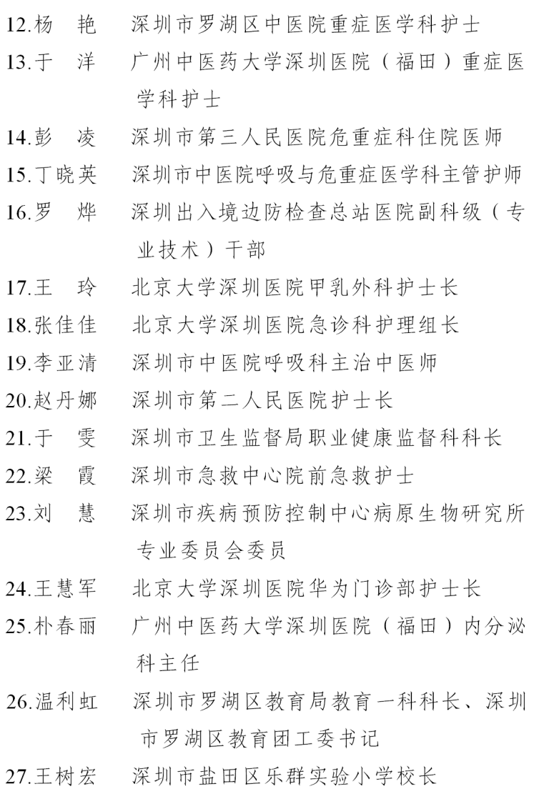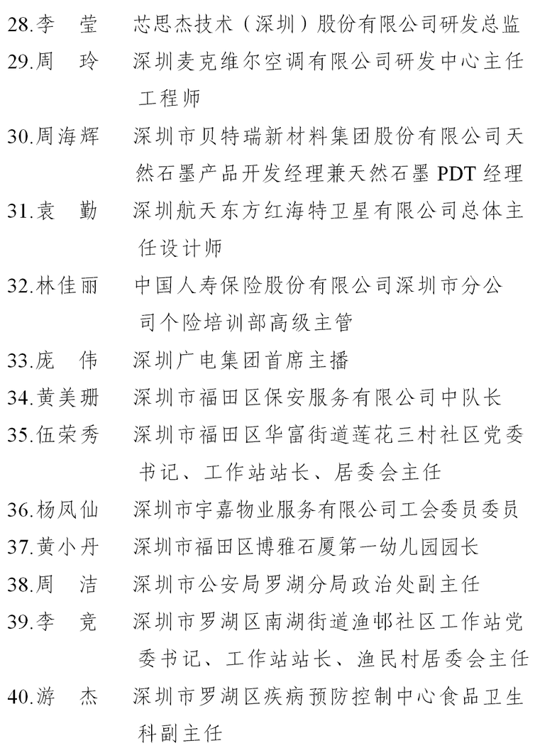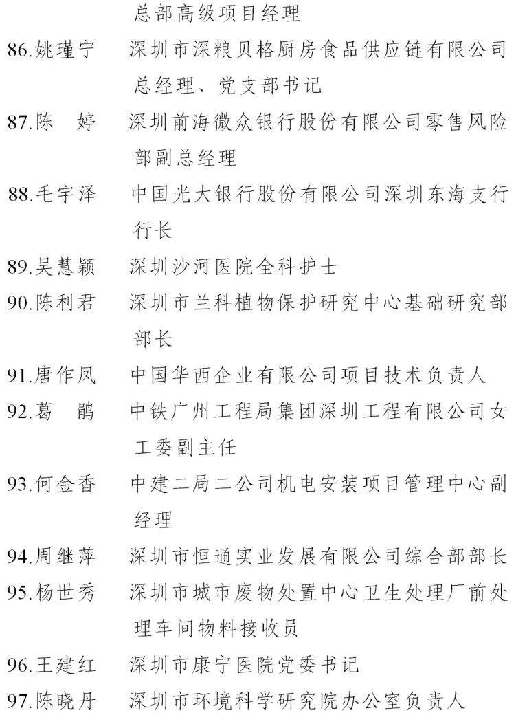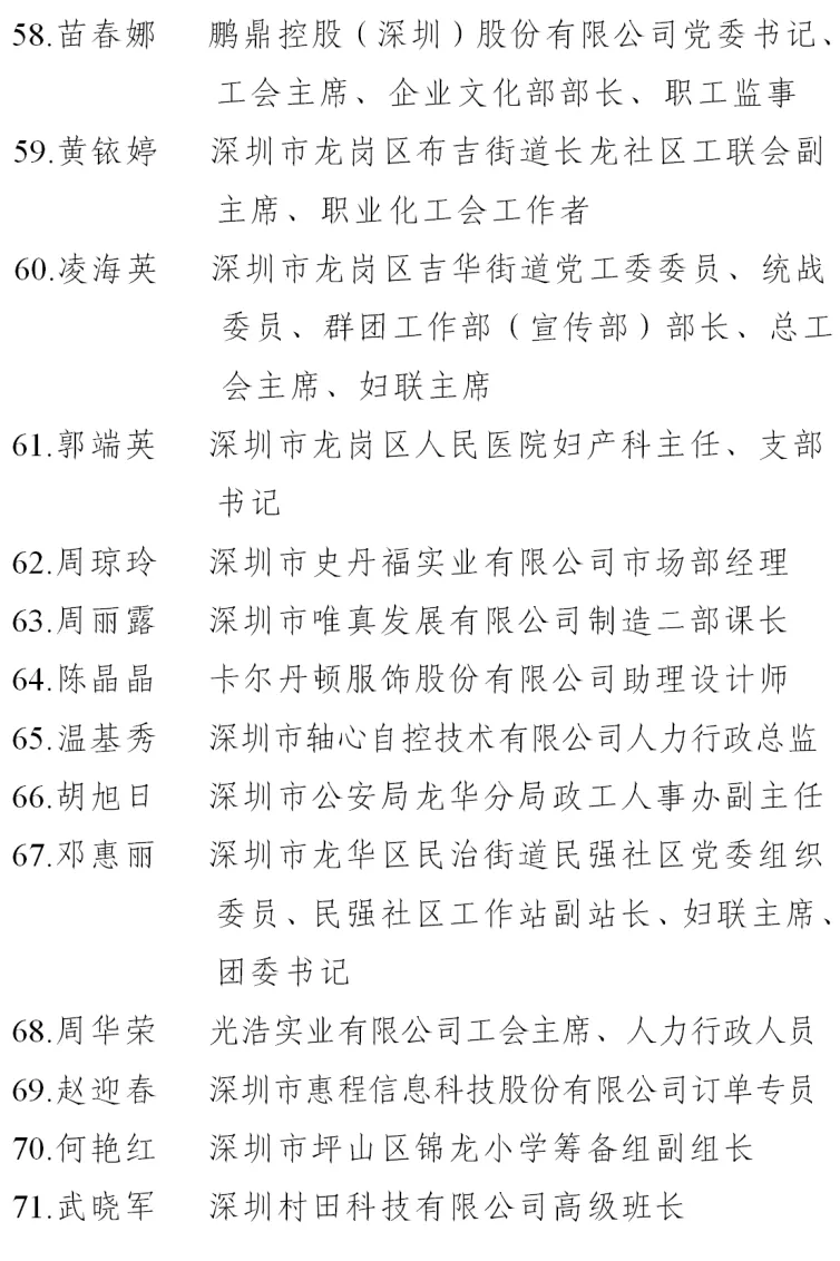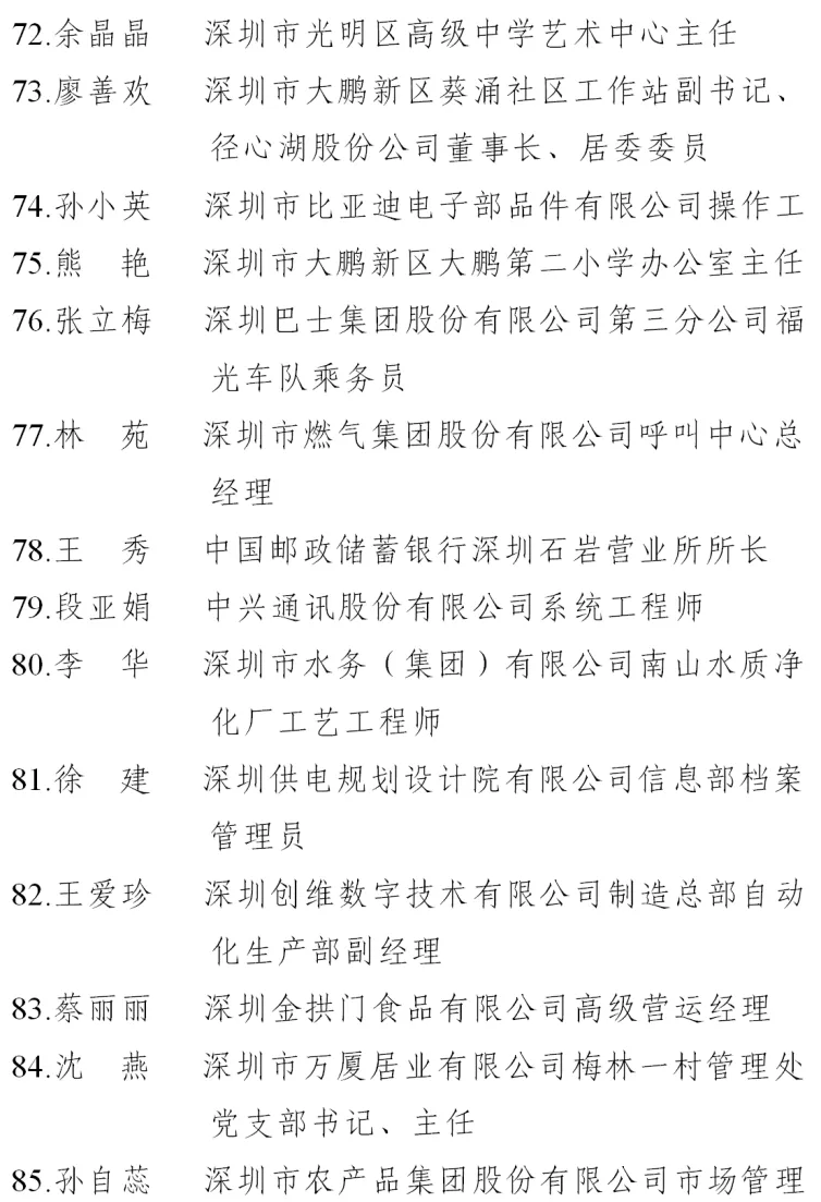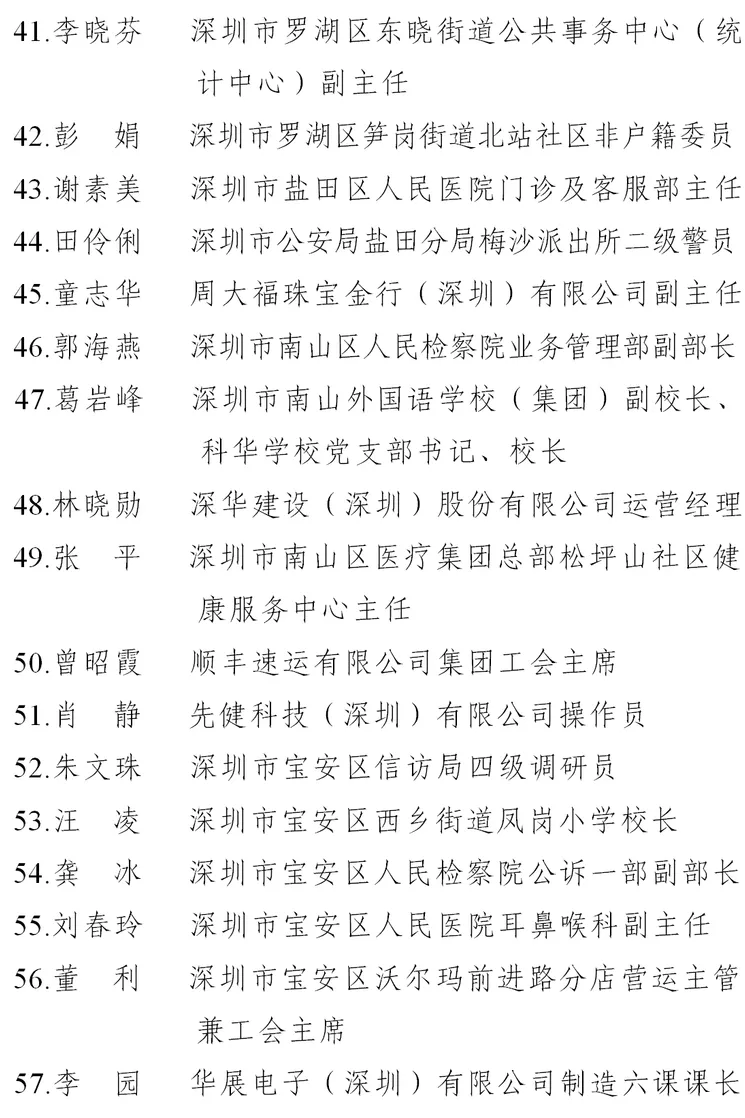 二、深圳市五一巾幗標兵名單