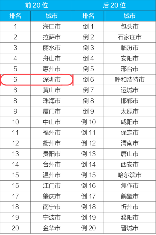 1-3月空氣質(zhì)量全國深圳排名第6