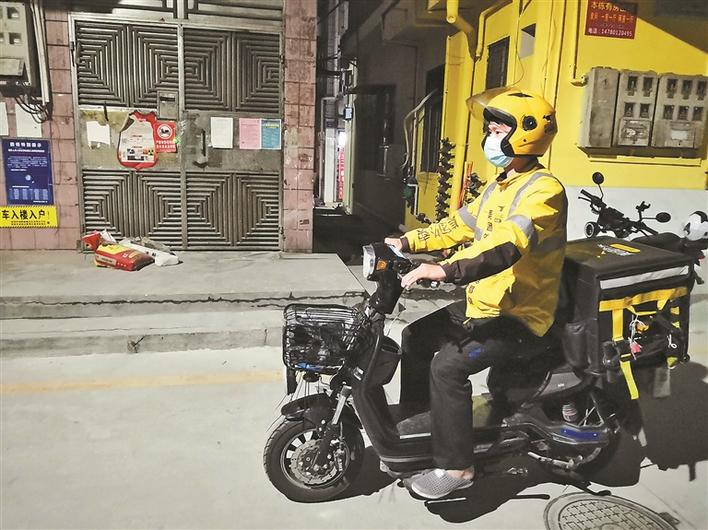 祝龍龍正給居民送外賣(mài)。