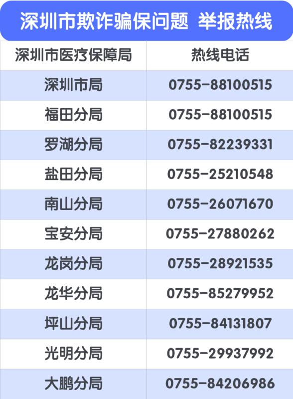 市醫(yī)保局已在深圳市各區(qū)設立投訴舉報電話,歡迎廣大市民共同參與醫(yī)?;鸨O(jiān)督管理。市民可通過實名舉報和匿名舉報方式檢舉、揭發(fā)欺詐騙保行為,經(jīng)查證屬實的,將根據(jù)《深圳市欺詐騙取醫(yī)療保障基金行為舉報獎勵實施細則(試行)》對舉報人予以獎勵,獎金最高可達10萬元?。ㄓ浾?莊瑞玉)