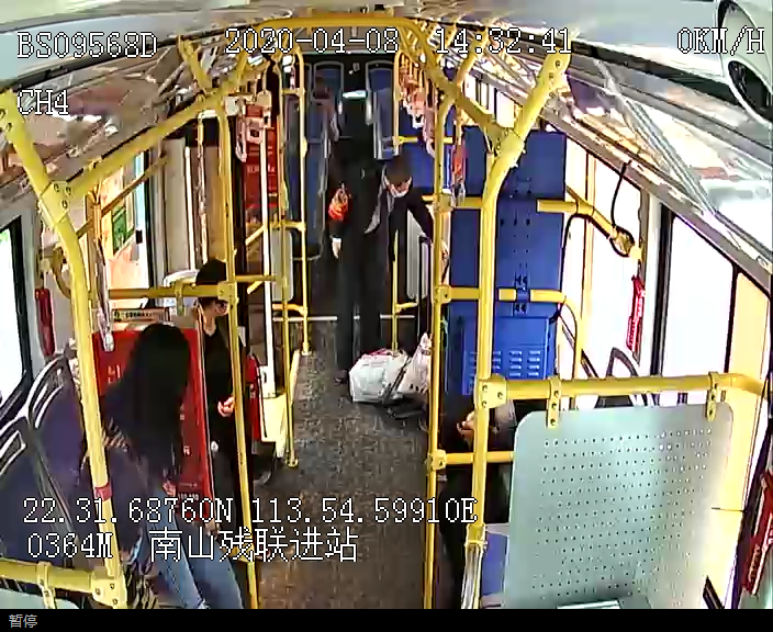 4月8日下午,67歲的李女士在廣中醫(yī)深圳醫(yī)院站乘坐深圳巴士集團(tuán)四分公司前海車隊(duì)M364線粵B09568D車前往南山村西站。在當(dāng)天下午14時(shí)31分,當(dāng)班駕駛員曹利平駕駛著車輛進(jìn)入南山殘聯(lián)站時(shí),聽(tīng)到有乘客在車上的呼喊聲,發(fā)現(xiàn)坐在后門附近座位上的李女士陷入暈厥,就連隨身的買菜的手拉車車滑倒至后門踏板處造成的聲響和旁邊乘客的呼喊提醒聲也沒(méi)有聽(tīng)見(jiàn)。由于擔(dān)心老人家的身體狀況,曹師傅走到李女士身邊多次呼喚,直到她清醒過(guò)來(lái)。
