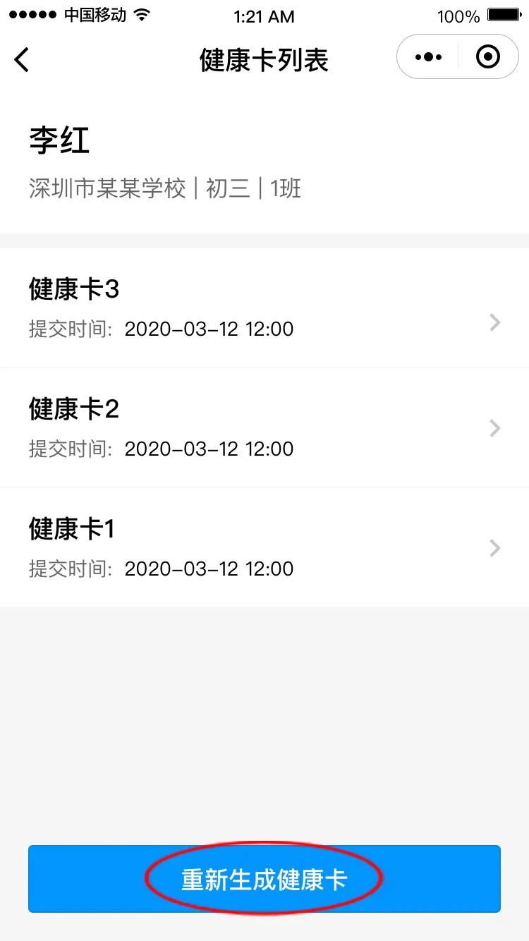 若不符合返校條件,需在符合條件后,點擊“重新生成健康卡”再次申報。
