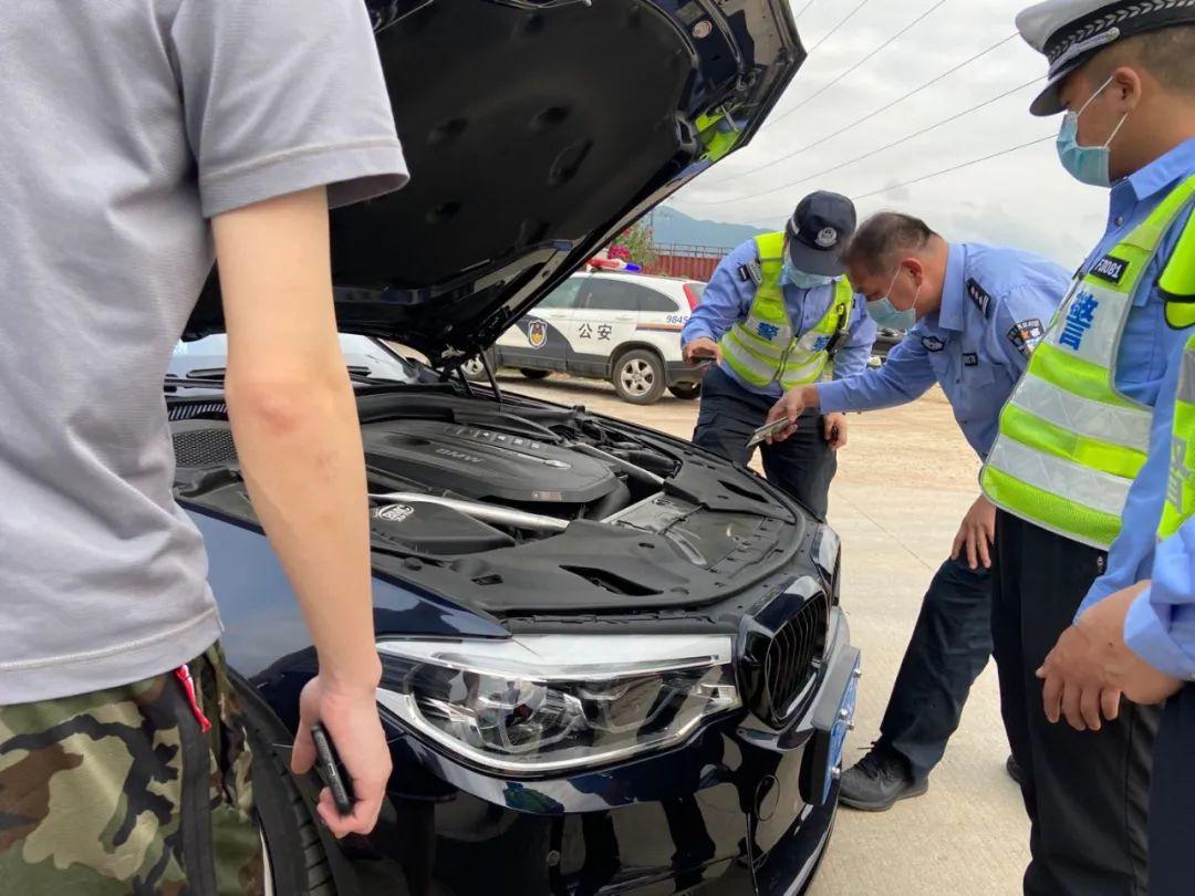 4月21日15時,深圳交警接到大數(shù)據(jù)平臺預(yù)警,發(fā)現(xiàn)一輛粵B號牌寶馬車涉嫌改裝后上路行駛。深圳交警鐵騎立即按照相關(guān)信息進行排查,最終在某小區(qū)內(nèi)負二樓停車場找到該違法改裝車輛。