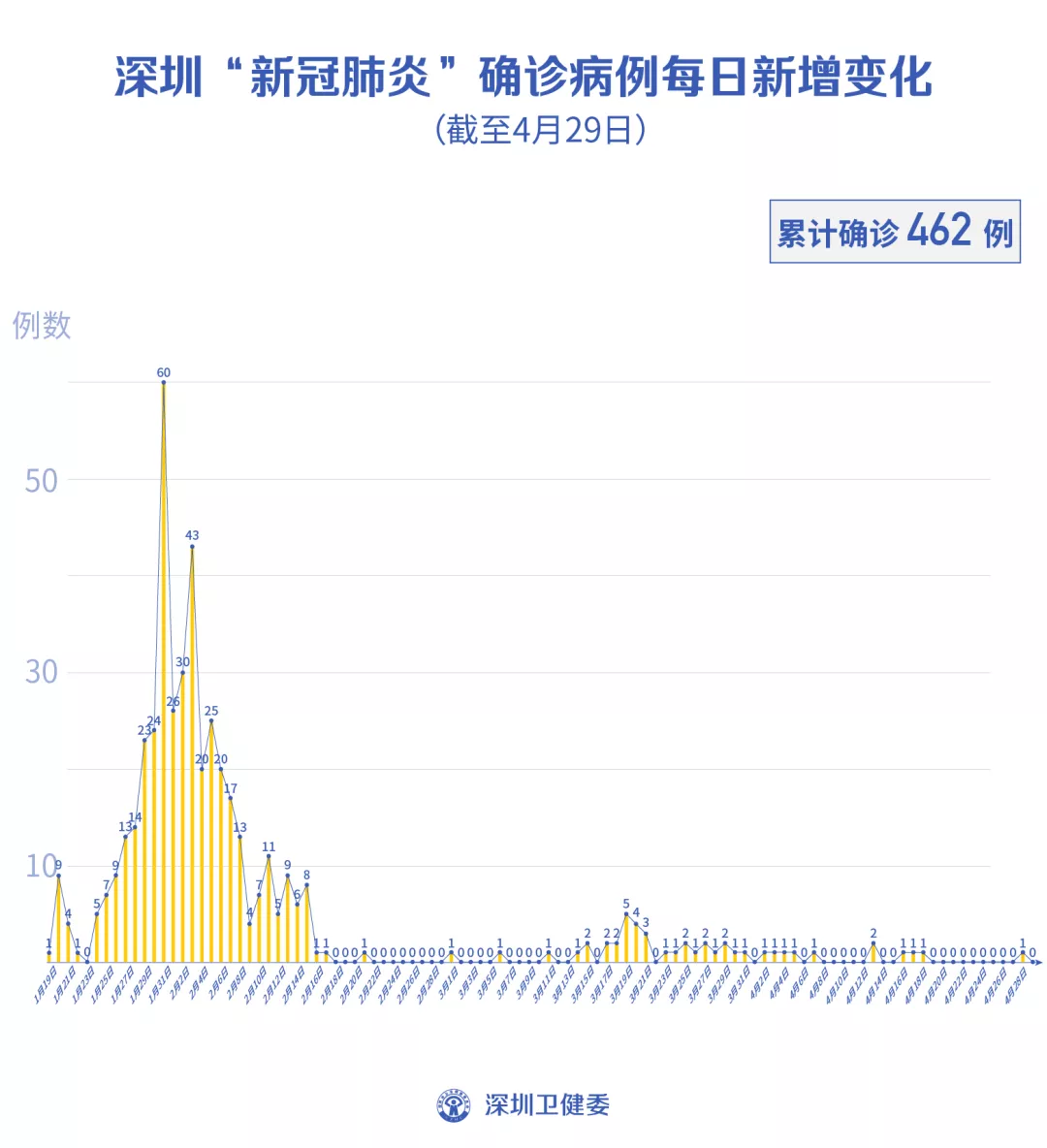 截至4月29日24時,深圳累計(jì)報(bào)告新冠肺炎病例462例。4月29日當(dāng)天新增出院3例。
