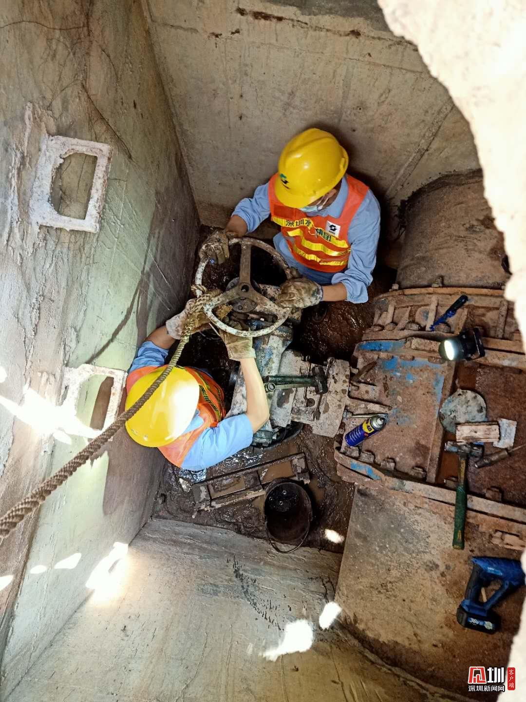福田分公司管網(wǎng)技術(shù)工程師羅雪明、賴彬和陳嘉澍,正檢查中水閥門是否開啟。