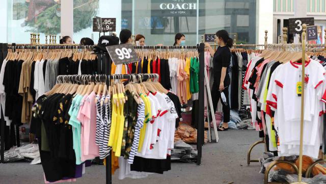 ▲夏季服裝開售,不少商家打折促銷,吸引市民選購(gòu)。
