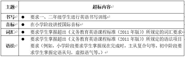1.培訓不得超出現行義務教育英語課程標準規(guī)定的各學段分級標準,禁止將初中知識類的教學內容提前至小學教學與測評,禁止將現行普通高中英語課程標準規(guī)定的知識類教學內容提前至初中教學與測評。