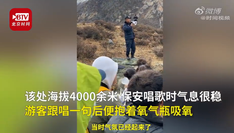 保安4千米海拔放歌安撫游客