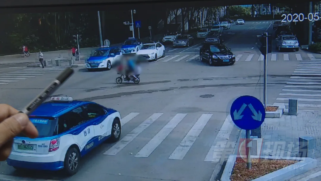5月12日下午,在南山外國語學(xué)校科苑小學(xué)與南山外國語學(xué)校中間路段,一位老人騎電單車,載著一名小學(xué)女生,沿著高新南環(huán)路由西往東方向行駛。