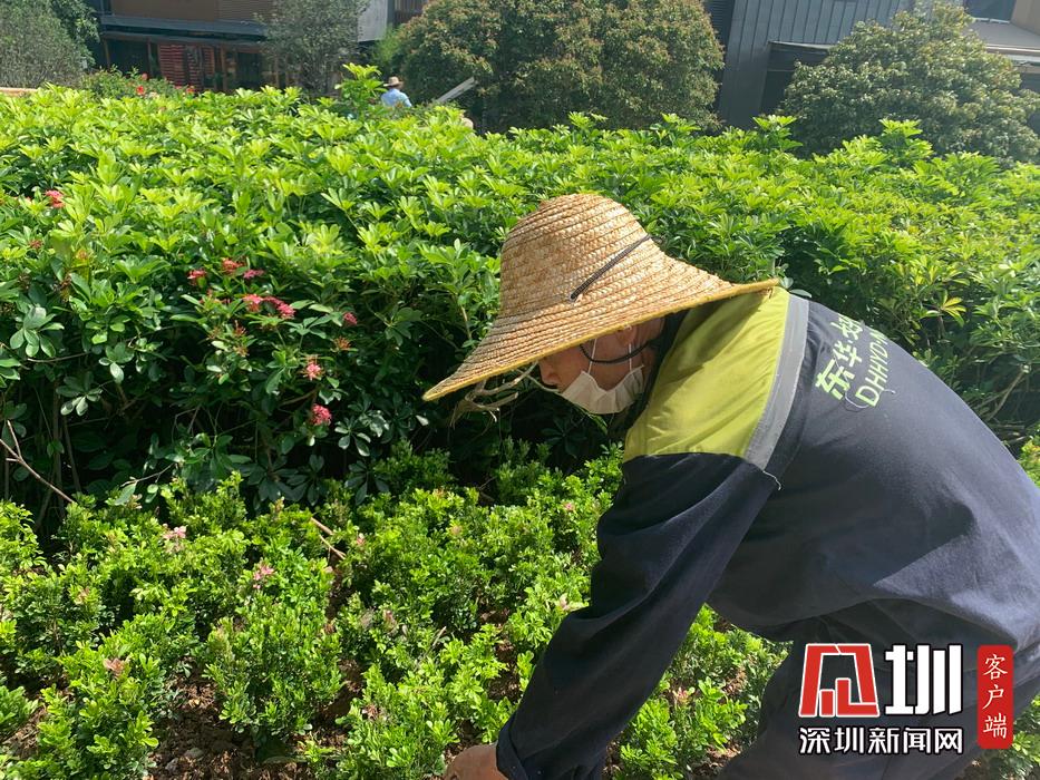 天氣炎熱,歡樂海岸園丁在戶外工作依然佩戴口罩。
