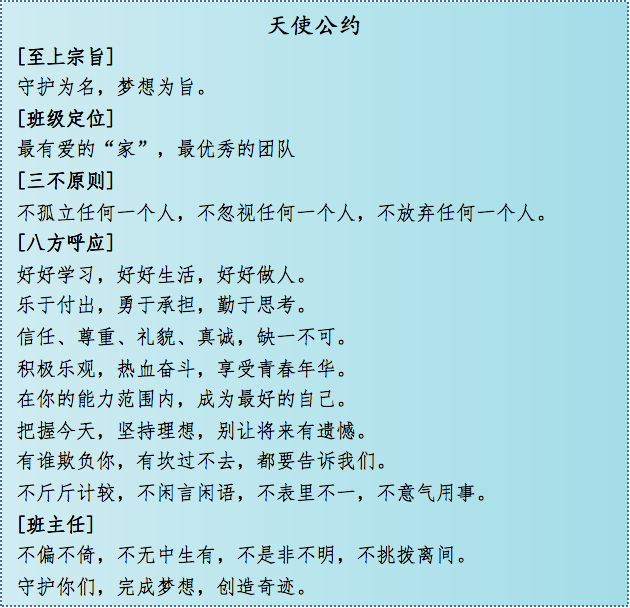 詹老師所帶班級(jí)嚴(yán)格遵守著“公約精神”,創(chuàng)造了一個(gè)個(gè)驚喜:2015級(jí)14班在藝術(shù)季班級(jí)文化設(shè)計(jì)中是全校唯一全員參與的班級(jí);2016級(jí)8班在跳繩比賽中從練習(xí)時(shí)的倒數(shù)第一到復(fù)賽逆襲闖進(jìn)決賽獲得一等獎(jiǎng);2017級(jí)9班在疫情網(wǎng)課期間堅(jiān)持每科作業(yè)“今日事今日畢”,無一人掉隊(duì)。
