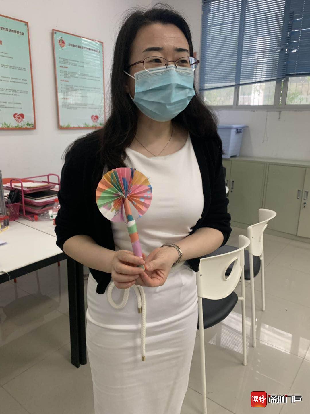 螺嶺外國語實驗學(xué)校三年級(12)班的學(xué)生林子軒專門為老師做了小折扇,一進校門就送到了老師手里,怕老師熱。