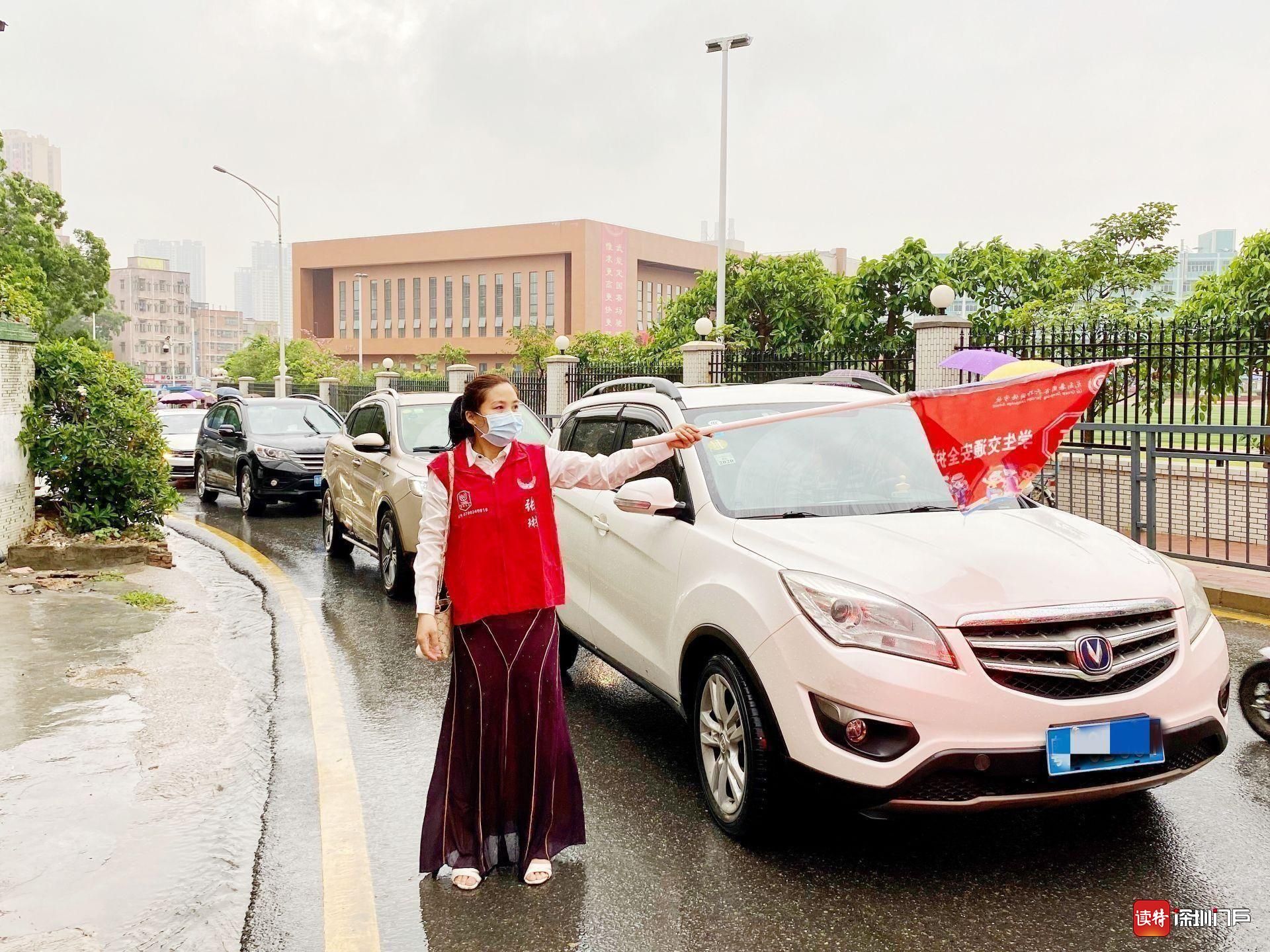 交警叔叔在路口指揮交通,穿著紅馬甲的老師和家長一路指引,校長伯伯早早在校門口等候,藍色帳篷走廊遮蔽了風(fēng)雨,“好多人在為我們服務(wù)啊……”