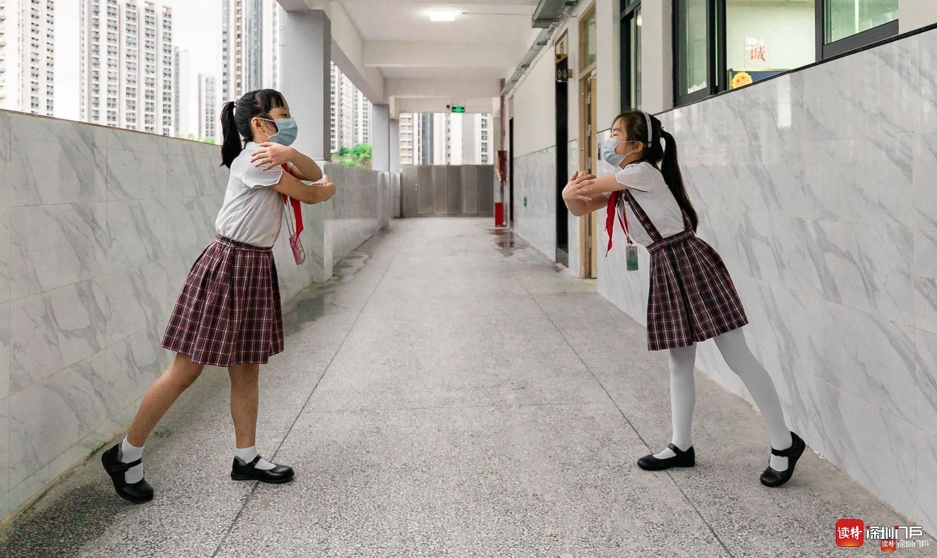 孩子們也用隔空擁抱的方式,慶祝著返校的激動心情!(讀特記者李麗)