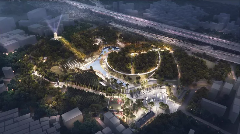“民法環(huán)”以懸浮于現(xiàn)狀山體并融于山體的形象和環(huán)形空中廊道,結(jié)合沿途場地特色,分段展示了平等、自愿、公平、誠實信用、綠色及公序良俗等民法6大基本原則,彰顯民法主題。行走于山林之間,感悟《民法》正氣,何樂不為?