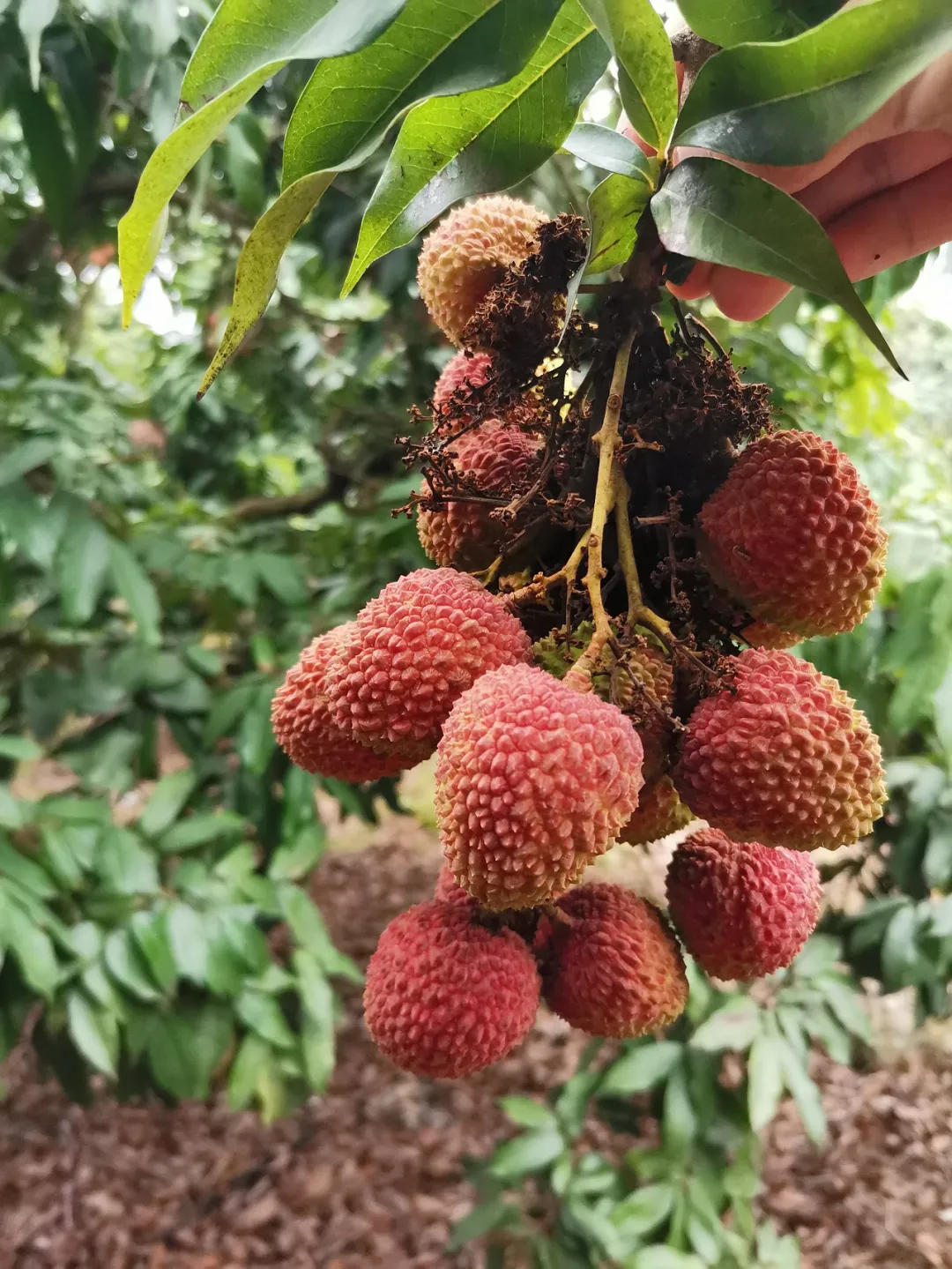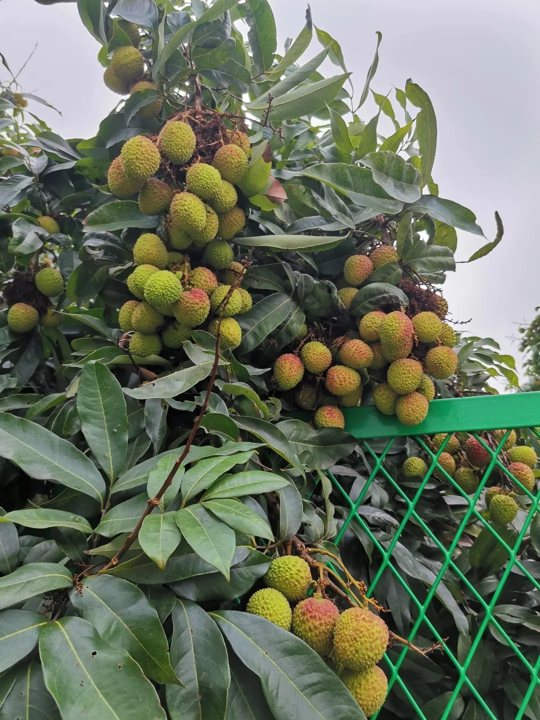 在西麗果場第二分場,記者看到,一串串個頭飽滿的妃子笑壓彎了樹枝,青中泛紅,甚是誘人。隨意采摘一顆,果肉細(xì)嫩,甘甜多汁?!板有θ种环杭t,是最新鮮美味的時候?!鼻窠鸬f,今年南山荔枝妃子笑收成屬于中等偏上年份,整個西麗果場場部的產(chǎn)量估計有5萬公斤,本月底正式上市。