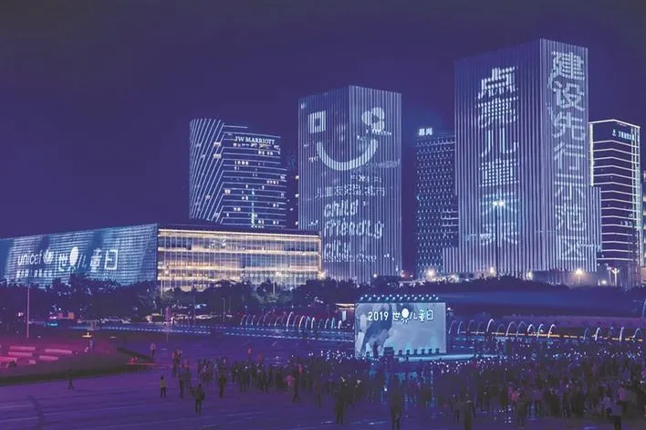 ▲2019年世界兒童日,深圳藍(lán)色燈光“點(diǎn)亮兒童未來(lái)”。
