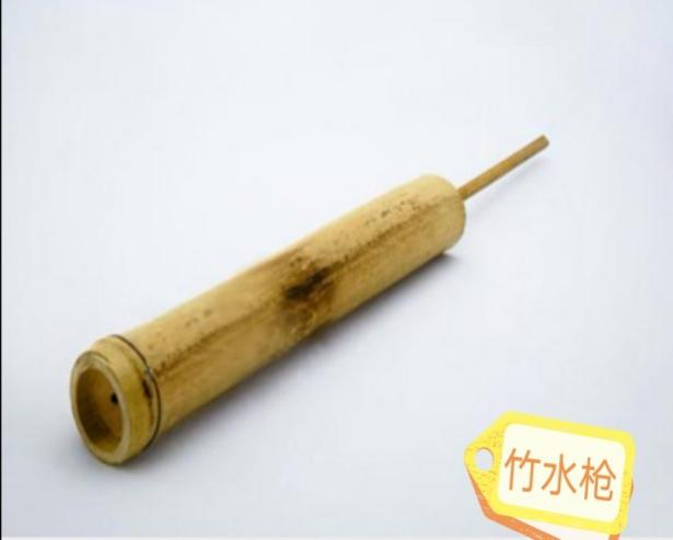 ▲爸爸童年時(shí)玩的玩具是利用一些天然材料純手工制作的,其中有幾樣爸爸印象最深刻,竹水槍和滾鐵環(huán)。