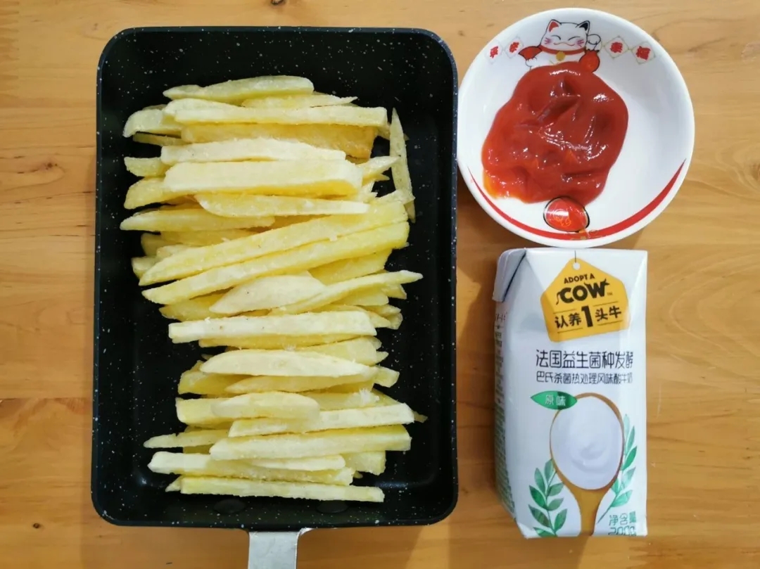 ▲小康最愛(ài)的零食是媽媽親自炸的薯?xiàng)l配番茄醬。
