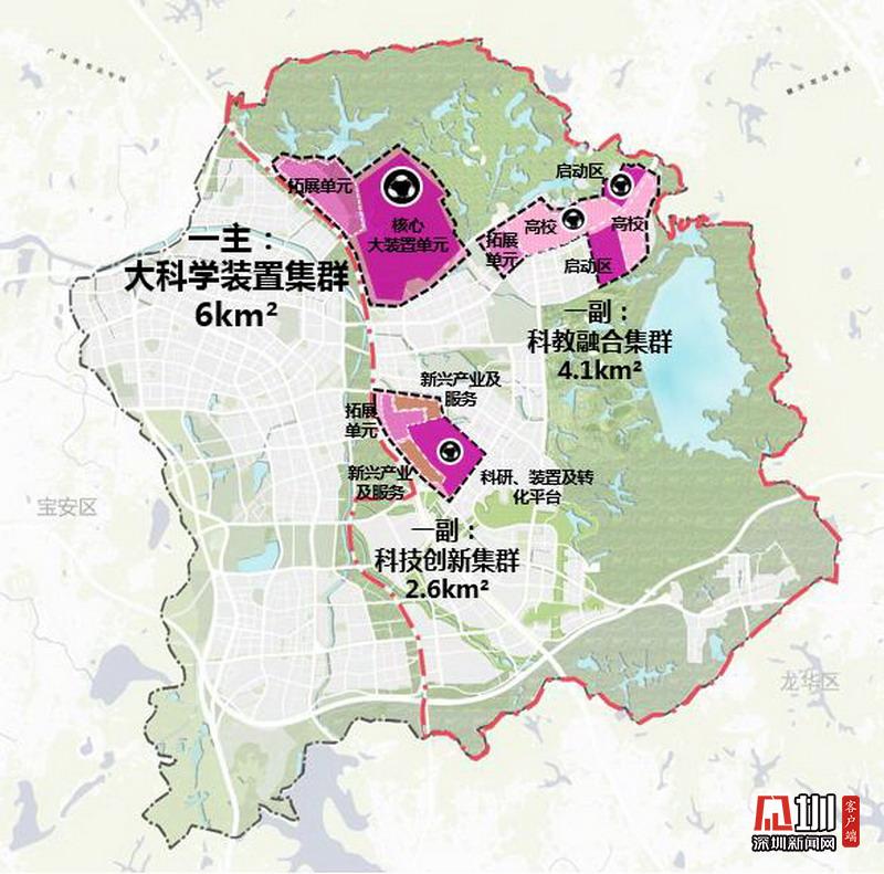 2019年8月18日,國家發(fā)布了《中共中央國務院關(guān)于支持深圳建設中國特色社會主義先行示范區(qū)的意見》,提出以深圳為主陣地建設綜合性國家科學中心。市規(guī)劃和自然資源局地區(qū)規(guī)劃處副處長葉陽介紹,光明科學城北起深莞邊界,東部和南部以光明區(qū)轄區(qū)為界,西部以龍大高速和東長路為界,規(guī)劃總面積99平方公里,將構(gòu)建“一主兩副”的科學裝置集聚區(qū)空間布局。