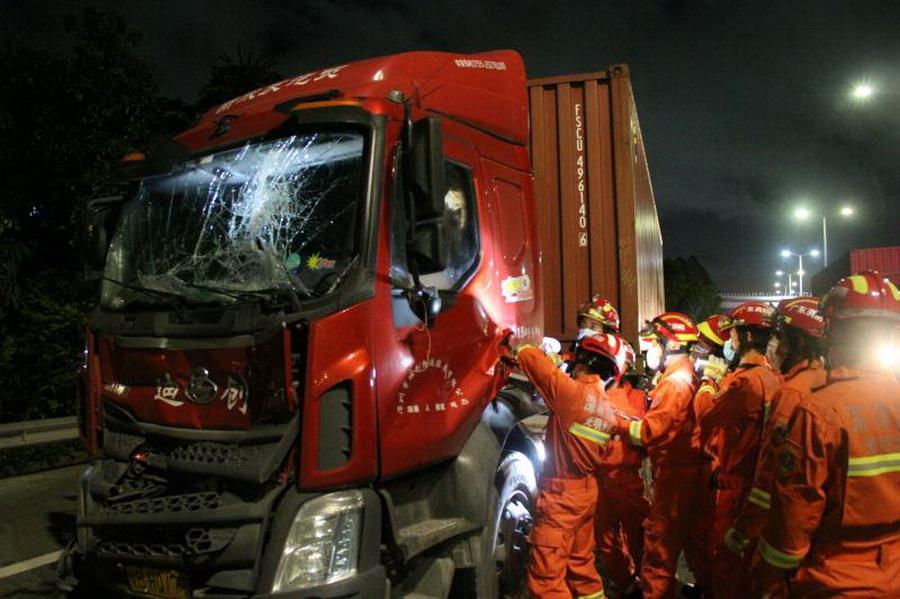 見圳客戶端·深圳新聞網(wǎng)2020年6月17日訊(見圳客戶端、深圳新聞網(wǎng)記者 張喆 通信員 戴沛旭)6月16日4時16分,位于龍大高速往東莞方向黃江公明出口500米處,兩輛大貨車在行駛過程中發(fā)生追尾,后車司機(jī)被困駕駛室。接警后,光明消防救援站迅速出動4車22名指戰(zhàn)員趕赴現(xiàn)場處置。到達(dá)現(xiàn)場后救援人員第一時間對現(xiàn)場拉起警戒,隨后利用破拆工具破開車門救出被困駕駛員,經(jīng)檢查詢問男子身體無大礙。
