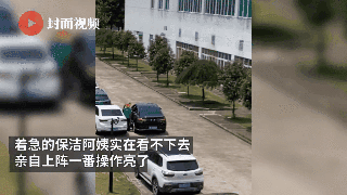 著急的保潔阿姨實(shí)在看不下去,親自上陣。