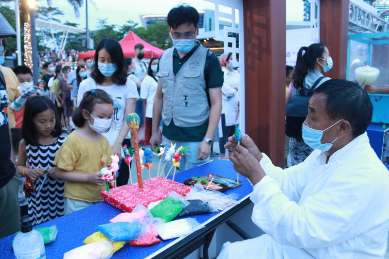 糖畫(huà)、捏面人、穿漢服……當(dāng)晚的海上世界廣場(chǎng)熱鬧祥和,約300人次中外居民歡聚一起,互致美好祝福,在感受中國(guó)傳統(tǒng)文化當(dāng)中共度端午佳節(jié)。