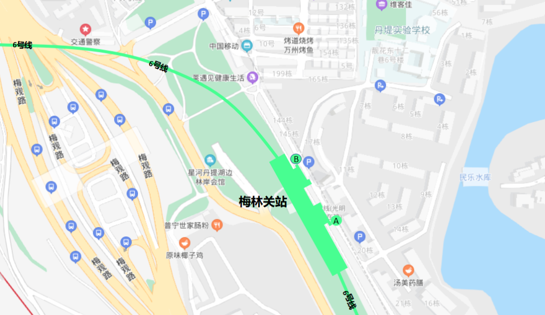 梅林關站出入口分布示意圖