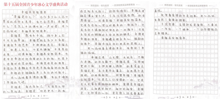 據(jù)活動(dòng)組委會(huì)相關(guān)負(fù)責(zé)人介紹,“第十五屆全國(guó)青少年冰心文學(xué)盛典”以“2020文學(xué)之路,向上的力量”為主題,全程公益免費(fèi),設(shè)置了小學(xué)低年級(jí)組(1-3年級(jí) )、小學(xué)高年級(jí)組(4-6年級(jí) )、初中組、高中組、大學(xué)組、教師組、文學(xué)愛(ài)好者組等多個(gè)組別。值得注意的是,所有報(bào)名選手必須使用本次活動(dòng)專(zhuān)用稿紙進(jìn)行書(shū)寫(xiě)創(chuàng)作。組委會(huì)將會(huì)根據(jù)選手報(bào)名提交的郵寄地址免費(fèi)郵寄活動(dòng)專(zhuān)用稿紙,每人僅限領(lǐng)取5張。選手完成手寫(xiě)作品以后,將作品掃描或拍照發(fā)送到全國(guó)青少年冰心文學(xué)寫(xiě)作指導(dǎo)中心深圳組委會(huì)指定郵箱szbxwx@126.com(冰心文學(xué)深圳)或gdbxwx@126.com(冰心文學(xué)廣東)。