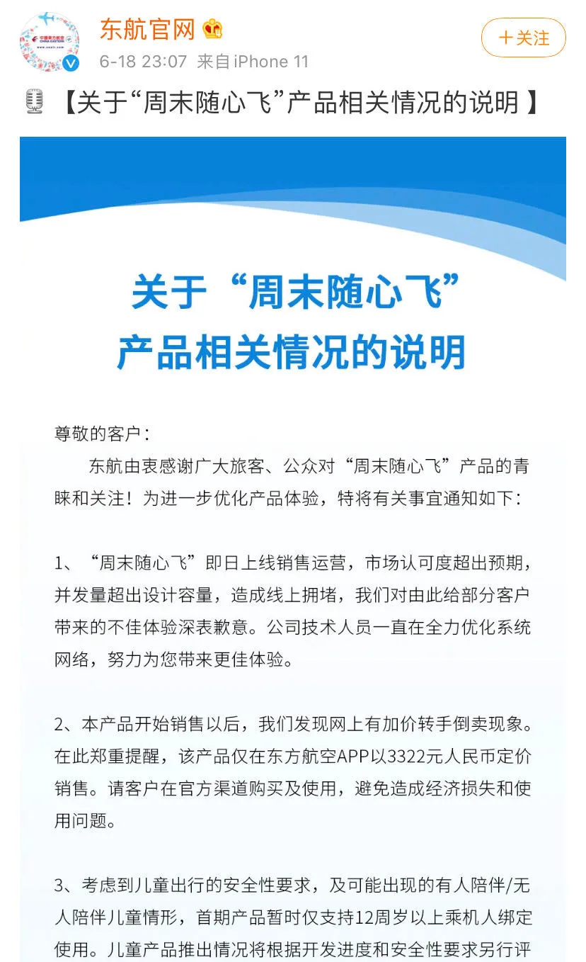 在官方微博,東航就“隨心飛”產(chǎn)品發(fā)表了一個(gè)說(shuō)明,對(duì)用戶出現(xiàn)不好的體驗(yàn)致歉,并稱技術(shù)人員正在全力優(yōu)化系統(tǒng)網(wǎng)絡(luò),努力給用戶帶來(lái)好的體驗(yàn)。