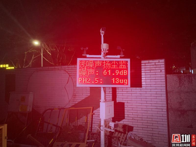 位于梅林中學(xué)附近的華強(qiáng)云產(chǎn)業(yè)園和鄰近的中糧金帝、恒利科創(chuàng)共同組成了一個(gè)工地集群,由于它們都是靠近住宅區(qū)屬于污染源中的二類區(qū),在噪聲分貝上有明確規(guī)定,白天不超過70分貝,夜間不超過55分貝。記者在現(xiàn)場看到,工地門口樹立著在線噪聲揚(yáng)塵監(jiān)測系統(tǒng),對工地的噪聲污染和空氣污染進(jìn)行實(shí)時(shí)數(shù)據(jù)監(jiān)控。