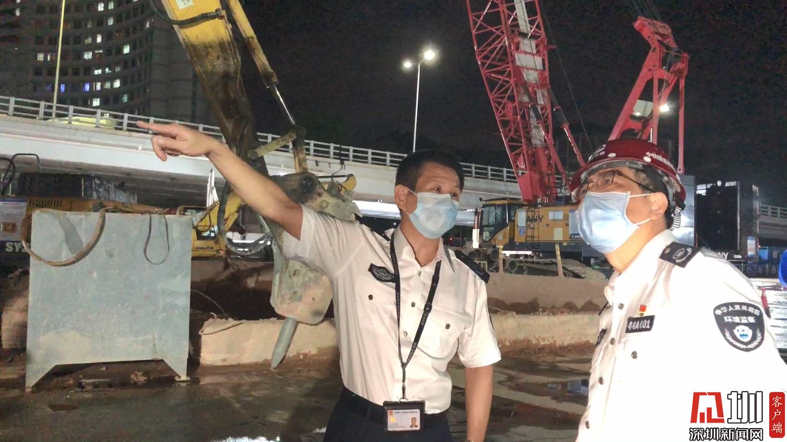 深圳市生態(tài)環(huán)境綜合執(zhí)法支隊(duì)支隊(duì)長許化一行聯(lián)合深圳市生態(tài)環(huán)境局福田管理局突擊檢查了黃木崗綜合交通樞紐一工區(qū)和華強(qiáng)云產(chǎn)業(yè)園兩處施工工地,均未發(fā)現(xiàn)違規(guī)超時(shí)施工行為。