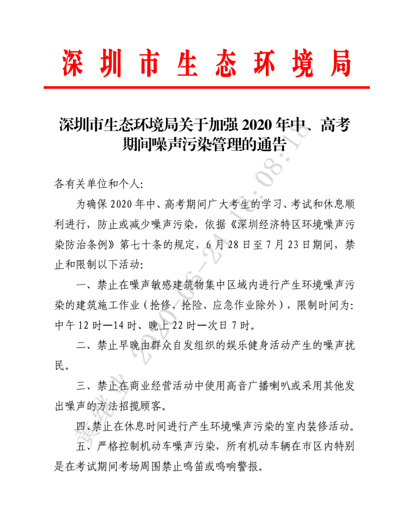 見圳客戶端·深圳新聞網(wǎng)2020年7月7日訊(見圳客戶端、深圳新聞網(wǎng)記者 葉梅 胡津瑋)一年一度的高考如期到來,受到疫情影響,今年高考格外引人關(guān)注。為了保障高考考生能夠擁有一個(gè)良好的考前、考中生態(tài)環(huán)境,深圳市生態(tài)環(huán)境局組織開展全市建筑施工噪聲污染夜查行動,突擊檢查考點(diǎn)附近工地施工情況。